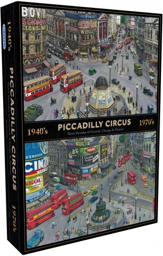 Objavte ikonické londýnske námestie s puzzle s 1000 dielikmi, ktoré zachytáva premeny Piccadilly Circus naprieč časom. Užite si kvalitnú tlač, presné výrezy a úžasnú zberateľskú ilustráciu pre relaxačné skladanie aj výzvu pre pokročilých.