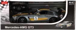 Objavte precízne spracovaný RC model MERCEDES-AMG GT3 v sivej farbe so žltými pruhmi a výrazným zadným krídlom. Detailná karoséria vyniká športovými líniami a autentickými prvkami pretekárskeho vozidla, ktoré potešia každého fanúšika rýchlych áut.