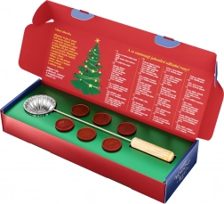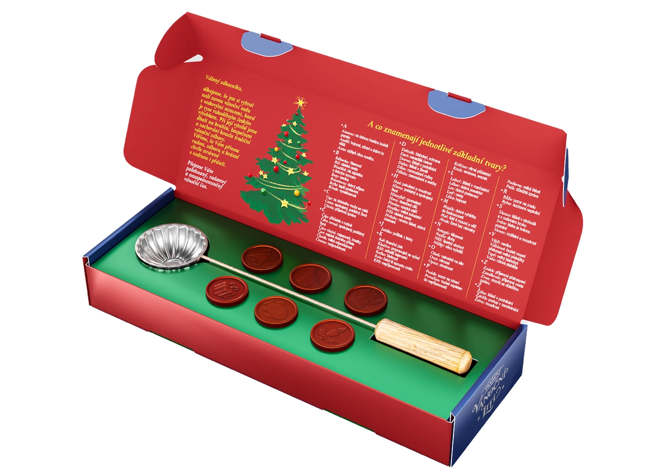 Všetko potrebné máte hneď po ruke – voskové mince sa rýchlo rozpúšťajú a špeciálna naberačka uľahčí bezpečné odlievanie do studenej vody. Výsledné tvary potom môžete spoločne vykladať a užiť si tak originálny sviatočný program.