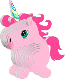 Ružový jednorožec ako 3D kartónový model je perfektnou voľbou pre malých tvorcov. Dieliky stačí vylúpnuť z hárkov a postupovať podľa návodu na obale. Hotová figúrka poteší ako hračka aj ako roztomilá dekorácia detskej izby.