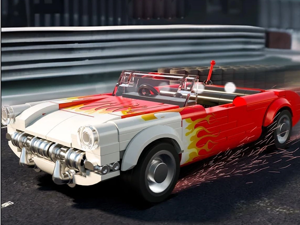 Vďaka realistickým prvkom, ako sú plameňové samolepky, plné ráfiky, špecifický predný nárazník a dekoratívny „chróm“, získate model s výrazným charakterom. Súčasťou je tiež obrázkový návod a separátor kociek pre pohodlné zostavovanie.