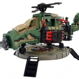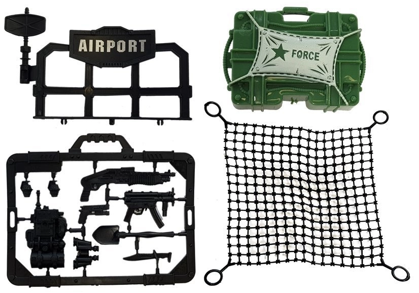 - Vrtuľník SWAT so zvukmi, vojenská motorová loď, 3 figúrky vojakov, pristávacia plocha, stan/veliteľské centrum, sada zbraní, veľká sieť