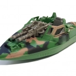 Odolná plastová loď v kamufláži s dvojicou predných diel a detailným kokpitom rozširuje akčné scenáre o vodné operácie.