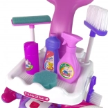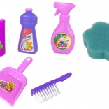 - Vozík na kolieskach, detský vysávač so svetlom a zvukom, mop, malá a veľká metlička, lopatka, hubka, „nečistoty“, napodobeniny prostriedkov na okná, podlahy, riad a čistiace mlieko