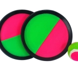 Velcro povrch v neónovo zelenej a ružovej farbe pevne drží loptičku, takže si hru užijú aj menšie deti a začiatočníci.