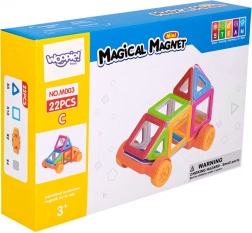 Magnetická stavebnica WOOPIE prináša deťom hravou formou základy geometrie a magnetizmu. Priehľadné, živo farebné dieliky sa k sebe hladko pripájajú a umožňujú vytvárať trojrozmerné domčeky, veže aj pojazdné vozidlá. Vďaka pevnej magnetickej väzbe sú konštrukcie stabilné, no zároveň ich možno rýchlo prestavať a rozvíjať tak fantáziu.