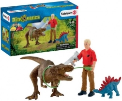 schleich dinosaurs útok tyranosaura rexe – herná sada s t-rexom, stegosaurom a výskumníkom