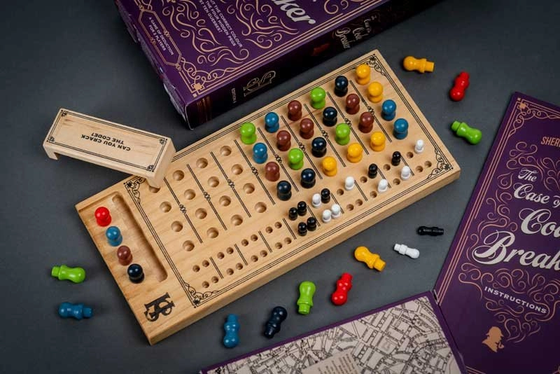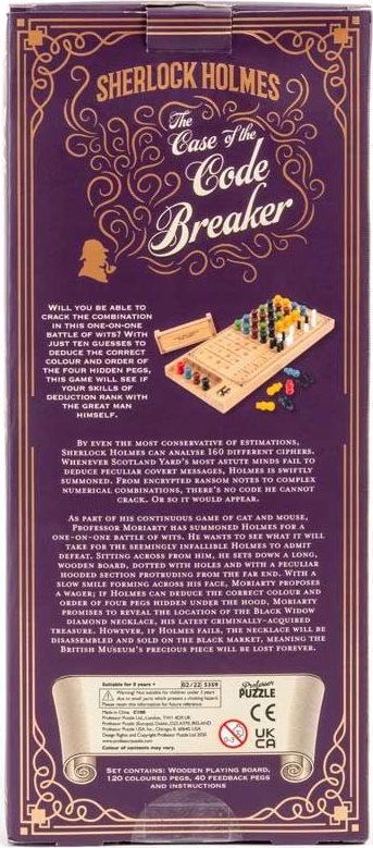 Legendárny hlavolam typu Mastermind v elegantnom drevenom prevedení prináša chytré súboje jeden na jedného. Jeden hráč tajne zvolí kombináciu, druhý sa ju snaží odhaliť do desiatich pokusov s pomocou bielych a čiernych hodnotiacich kolíčkov. Kombinujte, dedukujte a prekabáťte protivníka rovnako ako SHERLOCK HOLMES svojho rivala.