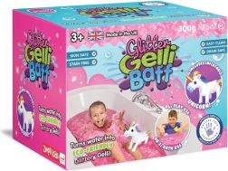 Glitter Gelli Baff prináša deťom zmyslovú zábavu vo vani aj mimo nej. Počas pár minút sa voda zmení na husté, ružové a trblietavé želé, ktoré je netoxické, bez škodlivých chemikálií a dermatologicky šetrné. Po skončení hry pridajte priložený rozpúšťač a gél sa zmení späť na vodu, ktorú možno bezpečne vypustiť.