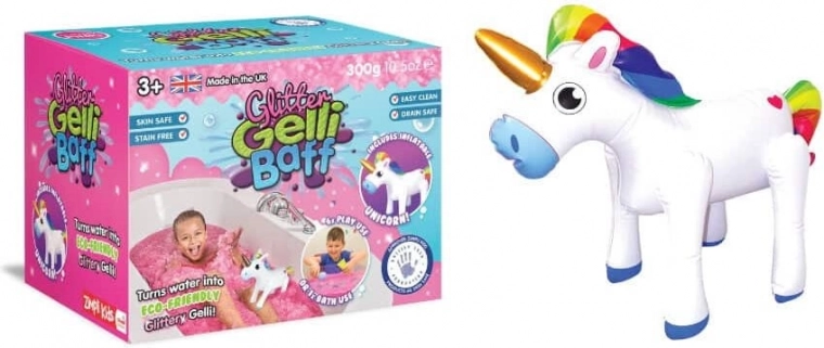 Súčasťou balenia je 30 cm nafukovací jednorožec, ktorý premení každý kúpeľ na rozprávkové dobrodružstvo.
