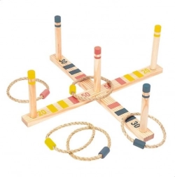 Obľúbená hra s krúžkami, pri ktorej rozhoduje dobré oko, presná ruka a trochu šťastia. Hádzacé krúžky Ring Toss od značky PROFESSOR PUZZLE prinášajú jednoduché pravidlá a množstvo zábavy pre celú rodinu. Stabilný drevený kríž s piatimi kolíkmi je pripravený behom chvíľky a môžete začať zbierať body.