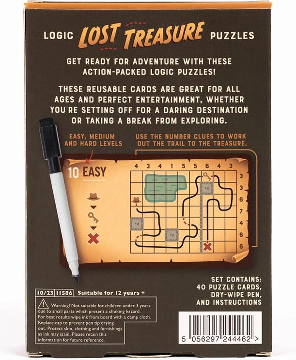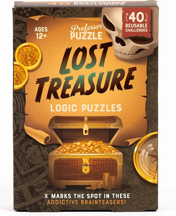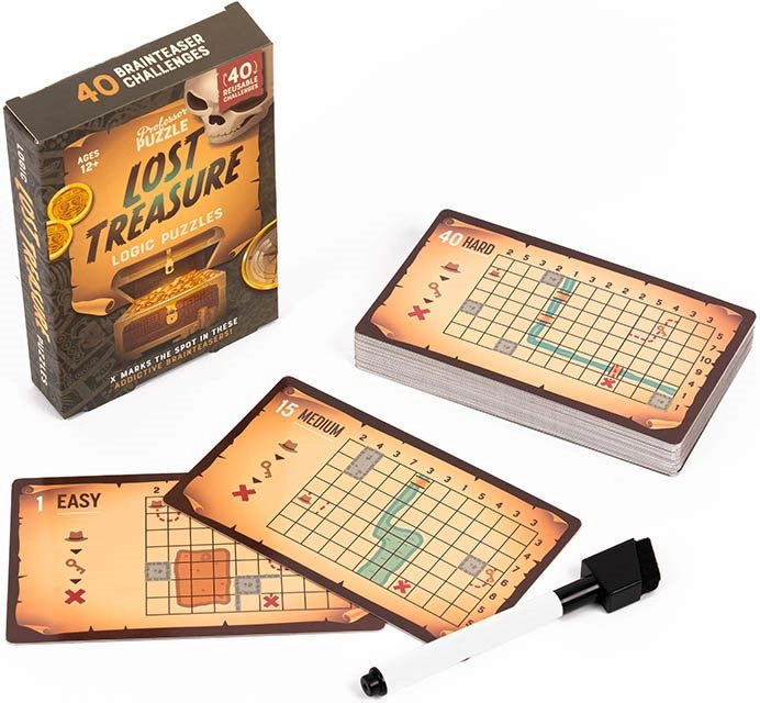 Rozvíjajte svoje logické myslenie s cestovnou sadou hádaniek Professor Puzzle Lost Treasure. Obsahuje 40 opakovane použiteľných kartičiek, stierateľné pero a návod – ideálna zábava pre všetky vekové kategórie doma aj na cestách.