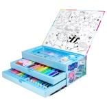 V sade nájdete bohatú škálu pomôcok na kreslenie aj maľovanie – od vodových farieb až po zvýrazňovače. Ideálne pre začiatočníkov aj pokročilejších malých výtvarníkov a výborný tip na darček.