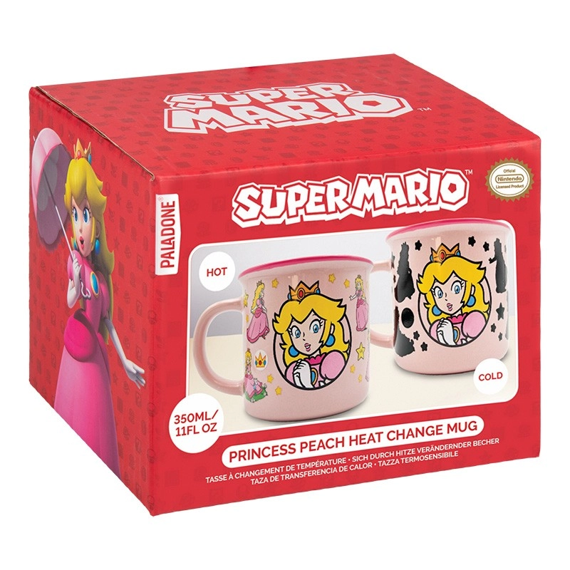 Urobte si radosť ikonickým doplnkom do kuchyne. Tento teplotne citlivý hrnček s princeznou Peach mení vzhľad pri kontakte s horúcim nápojom, takže každý šálok kávy či čaju je malým prekvapením. Vďaka objemu 350 ml je ideálny na každodenné používanie doma aj v kancelárii.