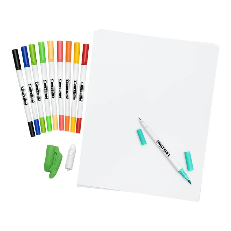 Sada obsahuje ľahké obojstranné popisovače s jemným aj širším hrotom na presné línie a plynulé tieňovanie. Ideálne na skice, obkresľovanie a vyfarbovanie motívov Minecraft.