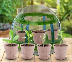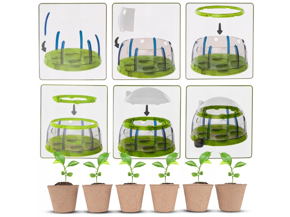 Vytvorte si doma malú záhradku a sledujte rast od semienka po dospelú rastlinu. Dekoratívny mini skleník s otváracou strechou a dvierkami ku každému kvetináčiku poskytne ideálne podmienky na klíčenie. Biologicky rozložiteľné kvetináčiky môžete presadiť priamo do pôdy – šetrne k prírode aj bez neporiadku.