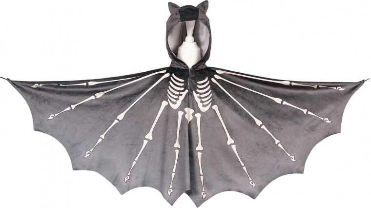 Rozkošný a zároveň tajomný detský kostým netopiera pre vek 4–8 rokov (104–128 cm) nadchne všetkých malých dobrodruhov. Pláštenka s kapucňou má netopierie ušká, pôsobivú potlač kostry na krídlach aj tele a zapínanie na suchý zips pri krku pre jednoduché obliekanie. Ideálny na Halloween, karneval aj tematické oslavy.