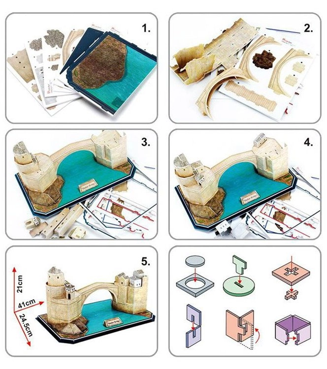 Poskladajte si ikonický most Stari most v Mostare ako dizajnový 3D model z kvalitnej peny a laminovaného papiera. Bez lepidla a nožníc, jednoduché vylamovanie dielikov z archu a stabilná konštrukcia robia z tohto modelu skvelý projekt aj štýlový doplnok interiéru. 64 dielikov, realistické detaily a čas stavby 60–100 minút potešia začiatočníkov aj skúsených staviteľov.