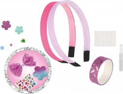 Dve plastové čelenky, samolepiace bodky, malé lepidlo a množstvo dekorácií – od trblietavých aplikácií po kamienky. Stačí otvoriť a začať zdobiť.