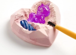 - Srdcový vykopávací blok, figúrka jednorožca, bonusový drahokam, 2 kopacie nástroje