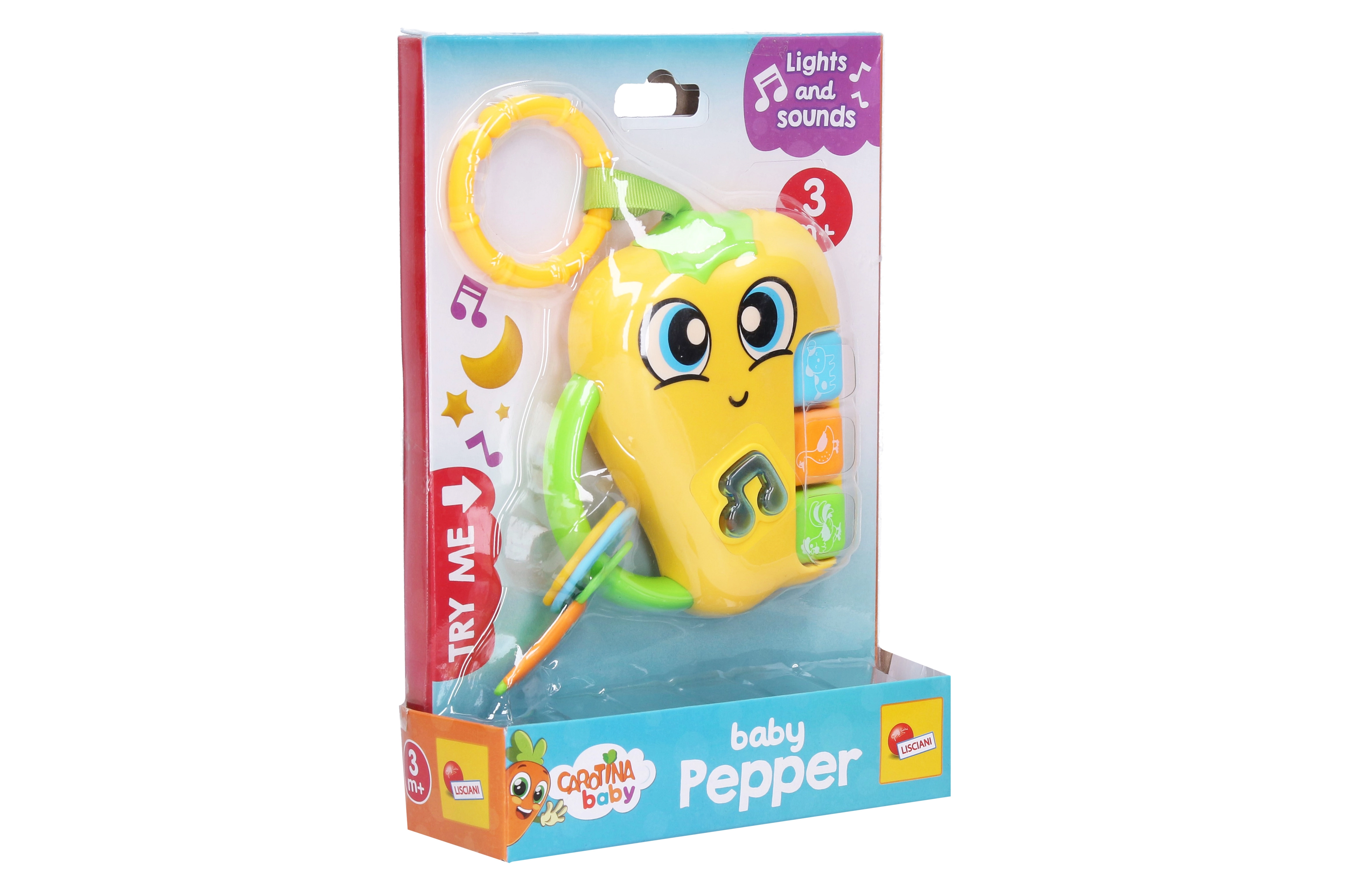 Roztomilá Carotina paprička je ideálna interaktívna hračka na rozvoj detských zmyslov a jemnej motoriky. Vďaka kombinácii melódií, zvukov zvieratiek a blikajúcich svetiel udržiava pozornosť detí a prirodzene ich motivuje k objavovaniu.