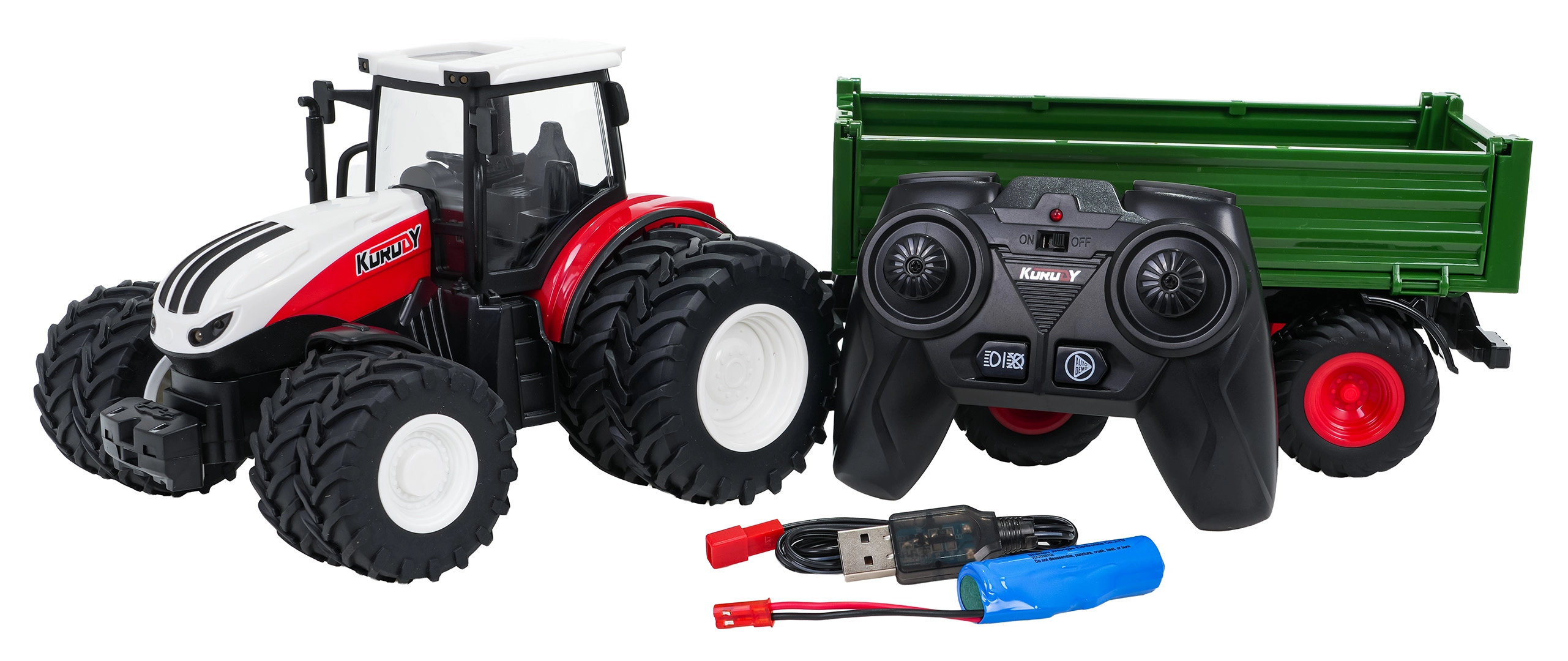 - traktor s prívesom, ovládač 2,4 GHz, akumulátor 3,7 V, USB nabíjací kábel