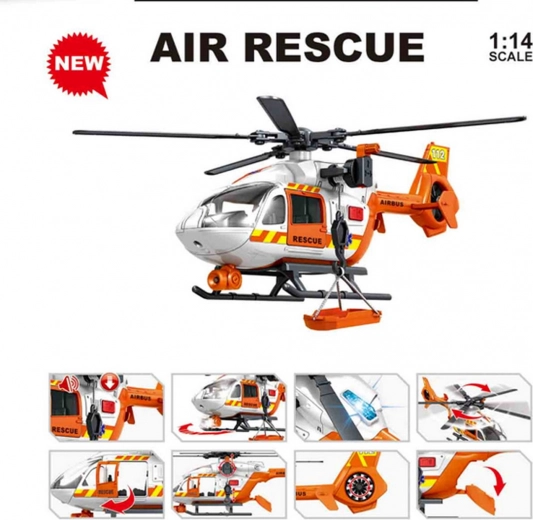 - Interaktívne efekty: LED svetlá a realistické zvuky záchranného vrtuľníka.