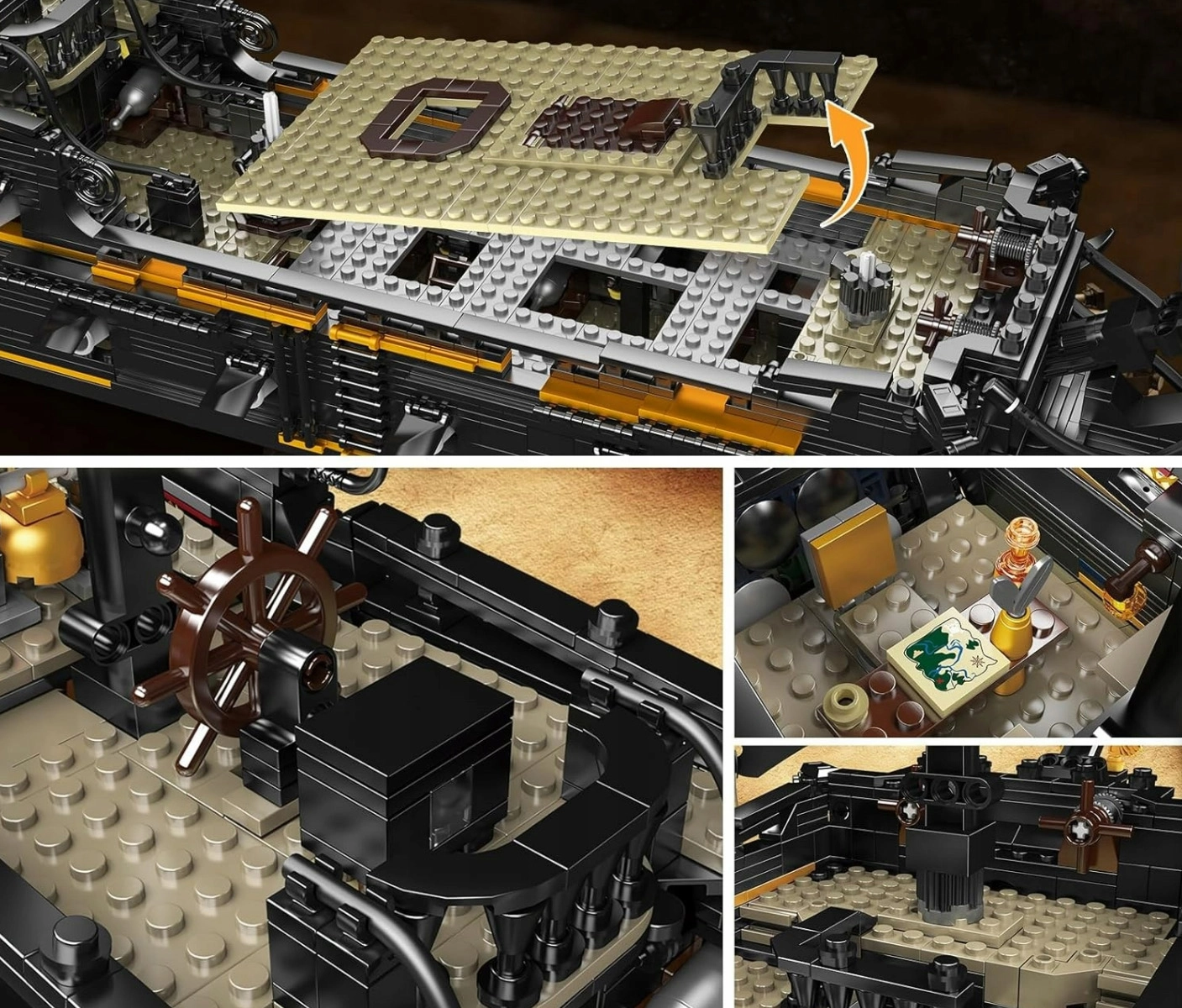 Táto veľká stavebnica pirátskej lode poteší každého fanúšika náročného stavanía aj milovníkov námorných modelov. Z 3180 precízne spracovaných dielikov postavíte pôsobivú čiernu loď s množstvom autentických detailov, ktoré vyniknú na poličke aj pri hraní.