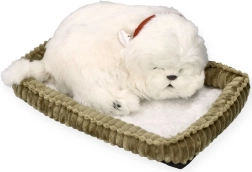 Toto spiace maltézáčie šteniatko v hebkom peliešku pôsobí až prekvapivo živo. Jeho mäkká plyšová srsť, jemné detaily a prirodzená poloha vytvárajú príjemnú, ukľudňujúcu atmosféru v detskej izbe aj obývačke. Skvelá voľba pre malých milovníkov zvierat, ktorí si chcú užiť radosť z „psíka“, ale bez starostí.