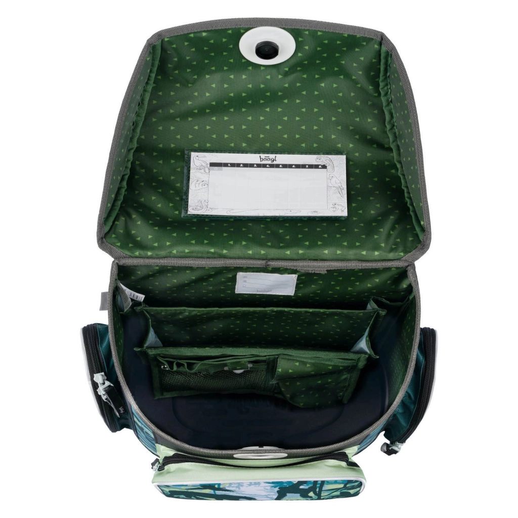 Vnútorný organizér udržiava učebnice a zošity na svojom mieste, priesvitné vrecko s rozvrhom zvyšuje prehľadnosť. Izolované predné vrecko je ideálne na desiatu, bočné vrecká pojmú fľašu na pitie.