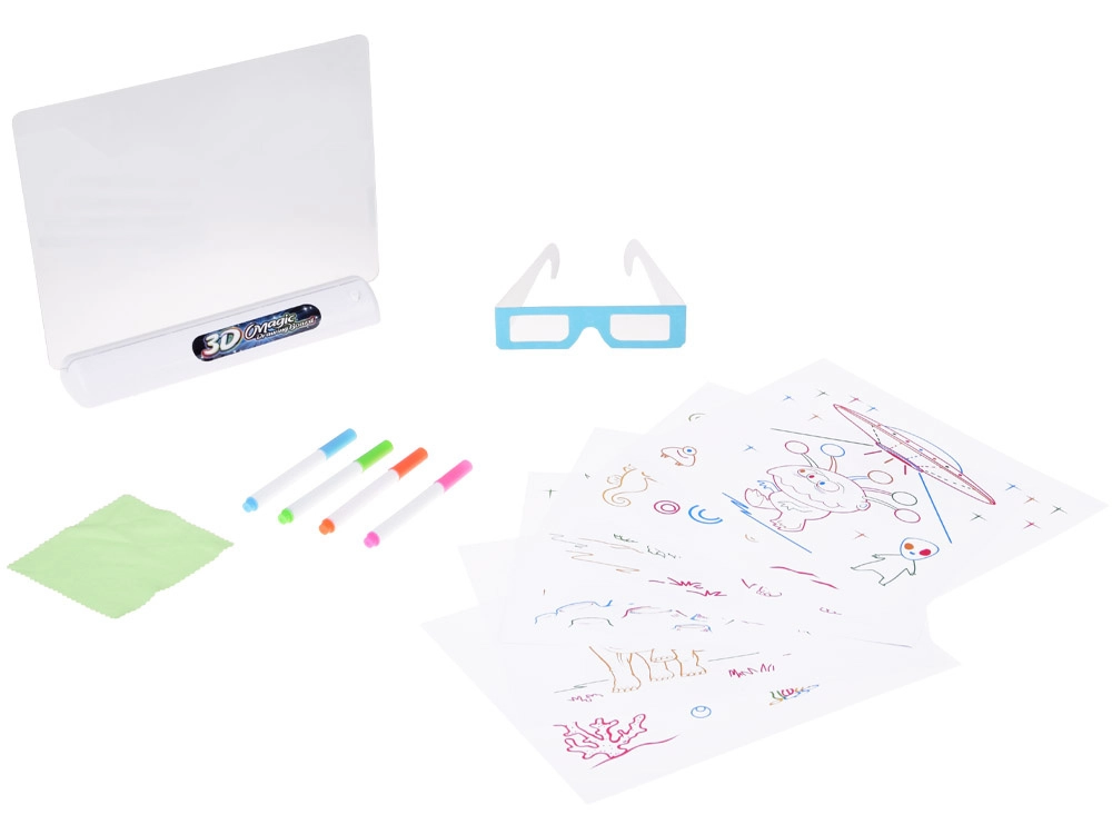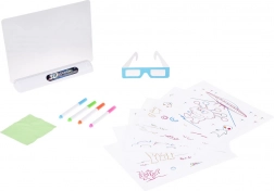 Priehľadná doska s LED podsvitom rozžiari ťahy fixiek. Po nasadení 3D okuliarov získajú obrázky realistickú priestorovosť a wow efekt.
