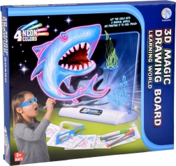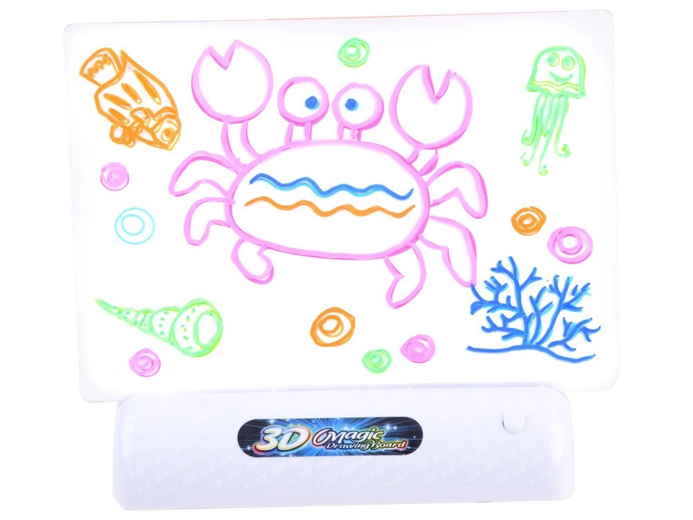 Čarovná 3D kresliaca tabuľa s LED podsvietením premení detské výtvory na neónové obrazy s 3D efektom. Vďaka fluorescenčným fixkám, 3D okuliarom a opakovane použiteľnej čírej doske je to skvelá voľba na rozvoj kreativity, fantázie a jemnej motoriky detí od 3 rokov.