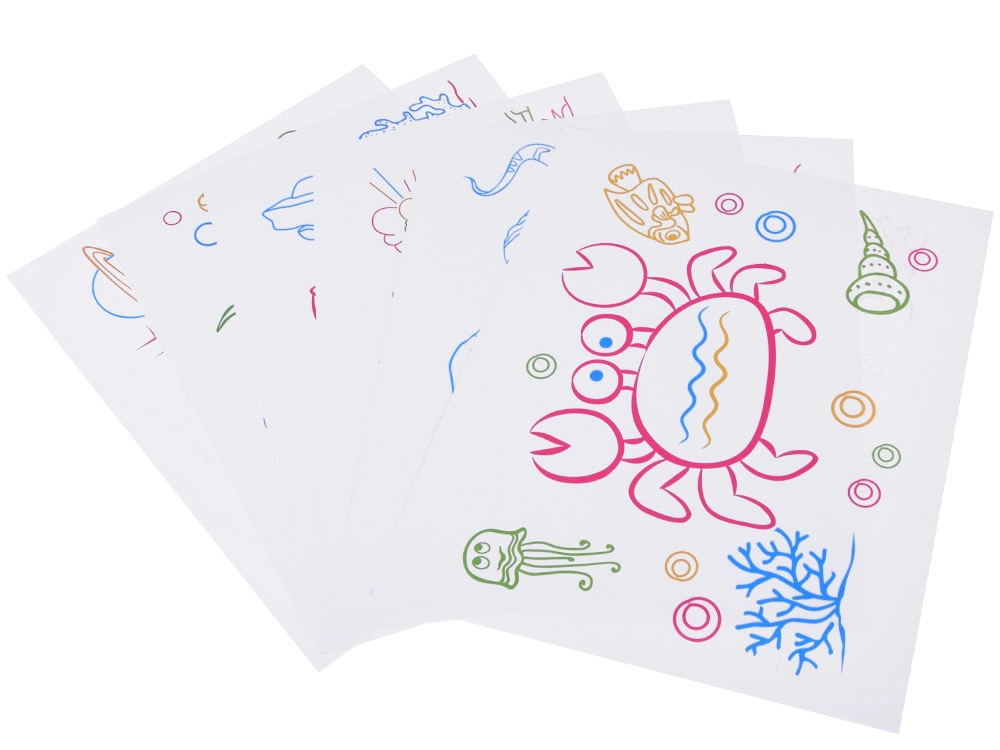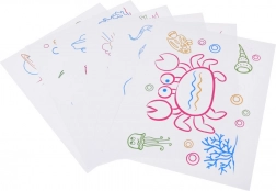 Súčasťou sú obojstranné šablóny s motívmi mora. Deti ich môžu vložiť za panel a pohodlne obkresľovať prvé obrázky.