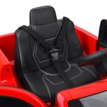 Diaľkový ovládač 2,4 GHz riadi smer, rýchlosť aj brzdu. Predné LED svetlá a zvuk štartu motora umocňujú realistický zážitok z jazdy.
