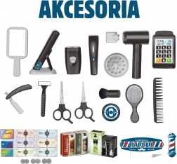 - žehlička na vlasy, 2× nožnice, hrebeň, kefa, zrkadielko, britva, miska a štetka na penu, podstavec pod žehličku