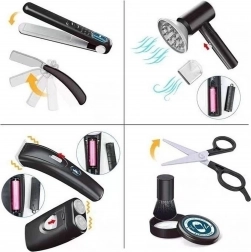 - Bohatá výbava 24 ks: nadstavce, nožnice, hrebene, žehlička, zrkadielko, britva a ďalšie.