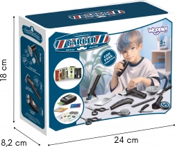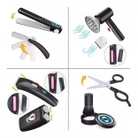 Set obsahuje všetko potrebné pre kompletnú kadernícku a barber starostlivosť: od sušiča a žehličky na vlasy po strojčeky, nožnice, hrebene a platobný terminál s peniazmi. Deti si vyskúšajú obsluhu zákazníkov, platbu kartou aj hotovosťou a naučia sa základom komunikácie a spolupráce.