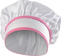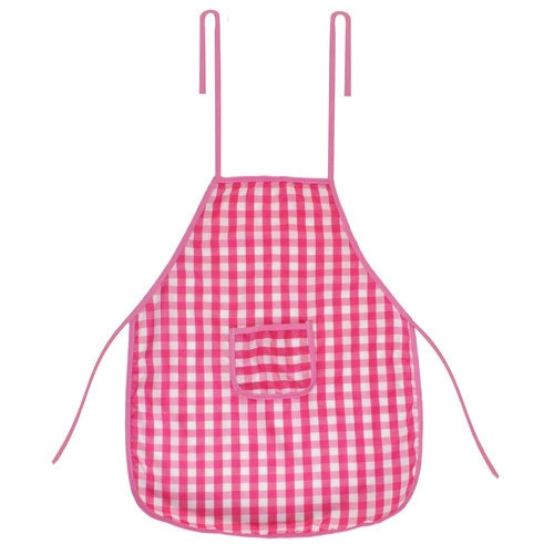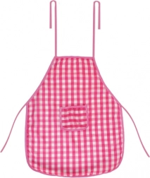 Ľahká ružovo‑biela kocka s viazaním okolo krku a pása zabezpečí pohodlné padnutie. Praktické vrecko udrží po ruke malé kuchynské pomôcky.