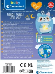 Interaktívny plyšový vlk Twinkle Twinkle je skvelým parťákom pre pokojný spánok aj hravú stimuláciu. Jemné svetielko a nežné melódie podporujú sluchové a vizuálne vnímanie, zatiaľ čo hebký povrch rozvíja hmat a prináša pocit bezpečia. Vďaka kvalitnému spracovaniu a certifikovaným materiálom je hračka vhodná pre bábätká od prvých dní.