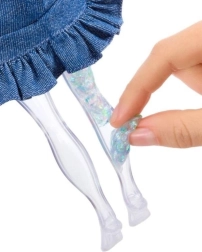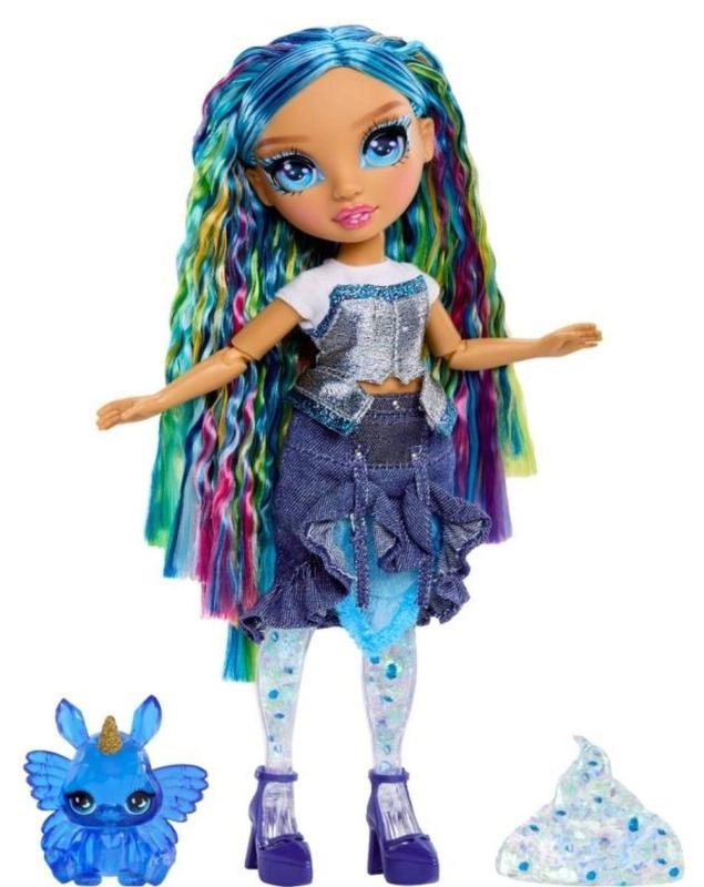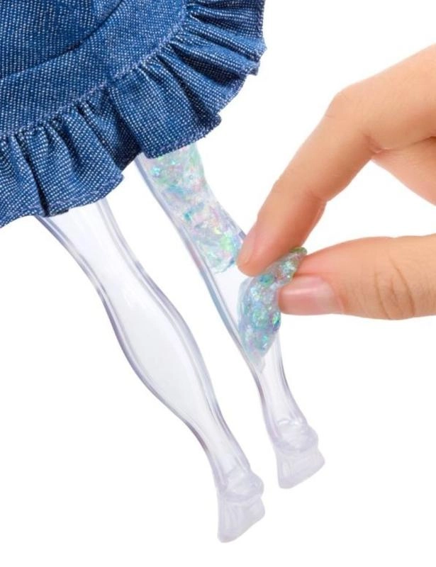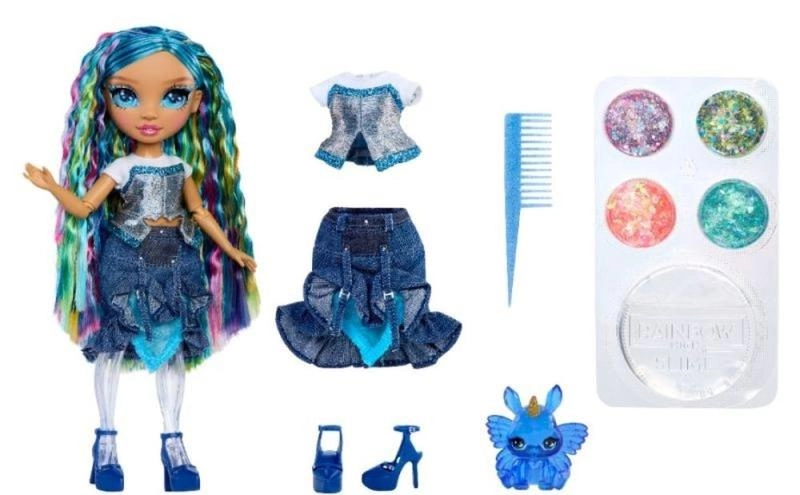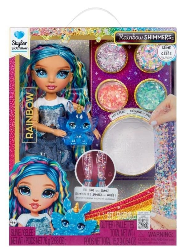 Bábika RAINBOW HIGH Skyler prináša úplne nový spôsob hrania – spojenie módy, slizu a trblietok. Vytvor si vlastný trblietavý mix, pridaj ho do priehľadných nôh bábiky a sleduj, ako sa zmení. Naplnenie je rýchle a jednoduché: odstráň zadnú časť nôh, vlož sliz, zacvakni a môžeš sa hneď hrať. A najlepšie je, že celý proces môžeš opakovať znova a znova.