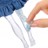Bábika Skyler má detailný denimový outfit, topánky, náušnice a rozkošného miláčika. Všetko pripravené na styling, fotenie aj vystavenie.