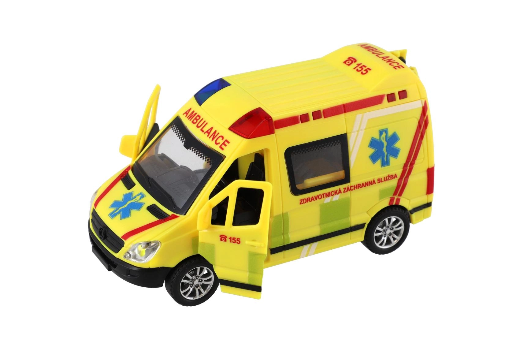 Plastová sanitka s dĺžkou 14,5 cm poteší všetkých malých záchranárov. Vďaka setrvačníku stačí autíčko postrčiť a samo vyrazí vpred. Realistické svetelné a zvukové efekty a otváracie dvere podporia kreatívnu hru a predstavivosť. Vhodné pre deti od 3 rokov.