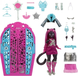 Staňte sa strašidelným detektívom a rozlúštite záhadu Hauntlywoodu! Po odomknutí šatníka sa odhalí kĺbová bábika MONSTER HIGH a bohatá výbava pre nekonečné módne kombinácie. Deti si zamilujú interaktívne hľadanie stôp pomocou „kúzelného“ zväčšovacieho kľúča a odmenu v podobe viac než 19 tematických doplnkov.