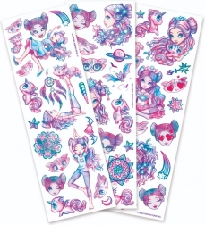Objavte kúzlo fantázie s 50 dočasnými tetovaniami NEBULOUS STARS. S motívmi Marinia a Octavia, morských pannien, mušlí a koralov si deti užijú rýchlu a jednoduchú aplikáciu, netoxické zloženie a skvelú zábavu na oslavy aj každý deň. Vhodné pre deti od 7 rokov.
