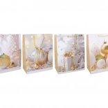 Štýlová vianočná darčeková taška veľkosti S poteší každého obdarovaného. Vďaka rozmerom 18 × 23 × 10 cm je ideálna na menšie darčeky, kozmetiku či drobné dekorácie. Ponúka kvalitné spracovanie, pevné ucho na pohodlné nosenie a sviatočný dizajn v 4 variantoch.