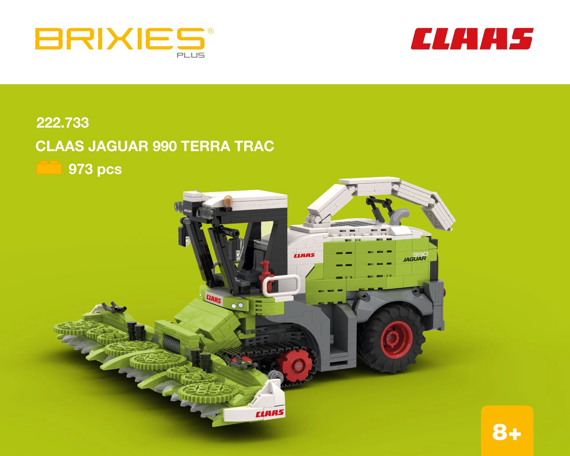 Táto stavebnica prináša realistický model zberového rezača CLAAS JAGUAR 990 TERRA TRAC s pásovým podvozkom. Po zostavení má približné rozmery 31,4 × 15,4 × 32,7 cm (d × v × š). Väčšie kocky série BRIXIES Plus zaisťujú pohodlné stavaníe a sú kompatibilné s inými stavebnicami podobného typu. V balení nájdete aj podrobný návod na zostavenie.