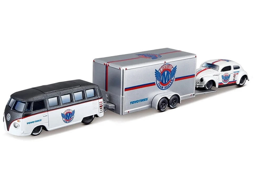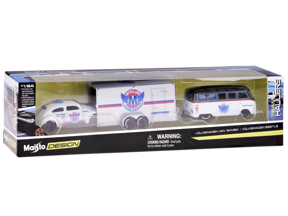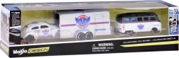 Objavte nadčasový dizajn klasických vozidiel v precíznom spracovaní značky Maisto. Set v elegantnej bielo–striebornej kombinácii ponúka kovové telá modelov, plastové podvozky pre ľahkosť a plynulú jazdu na rôznych povrchoch vďaka gumovým kolesám. Beetle sa pohodlne zmestí na priložený príves, takže si užijete aj autentickú prepravu, aj pôsobivú expozíciu v zbierke.