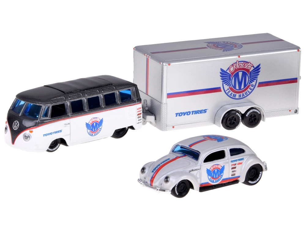 Volkswagen Van Samba je vybavený ťažným hákom na zapojenie prívesu; hák možno podľa potreby demontovať, príves je možné odpojiť aj bez odskrutkovania. Celý set je ideálny pre nadšencov klasických vozidiel, zberateľov mierky 1:64 aj deti, ktoré milujú kreatívnu hru.