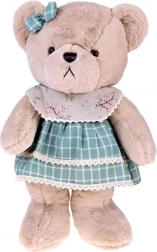Plyšový medvedík Zosia je navrhnutý v obľúbenom vintage štýle – zelené šaty s bielou kockou dopĺňa jemná čipka a kvetovaný golierik. Vďaka mimoriadne mäkkému plyšu je skvelý na maznanie, upokojenie aj ako ozdoba detskej izby.