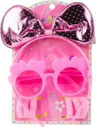 Štýlová ružová sada doplnkov pre malé parádnice obsahuje detské okuliare v hravom tvare, čelenku s veľkou mašľou a 6 gumičiek do vlasov. Ľahká a bezpečná konštrukcia je ideálna na každodenné nosenie, hraní sa na stylistku aj princeznovské prezliekanie.